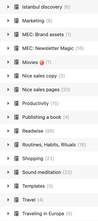 Examples of things I save: how to take care of my avocado seeds, how to make a knot with a harp string, feedback from my mentors on coaching, membership benefits of my card, gift ideas, etc.
