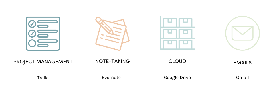 As you can see from the chart below, I use different technology tools for specific purposes.